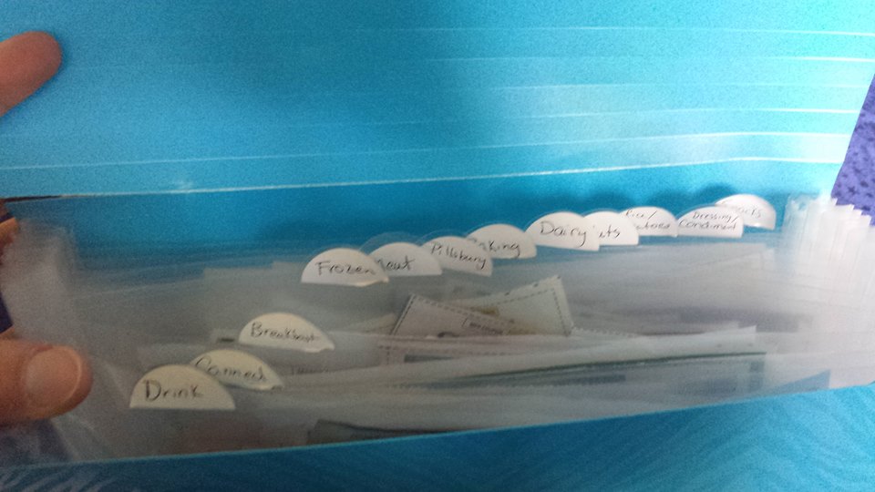 I prefer 3 coupon folders separating foods, hygiene, and cleaners.