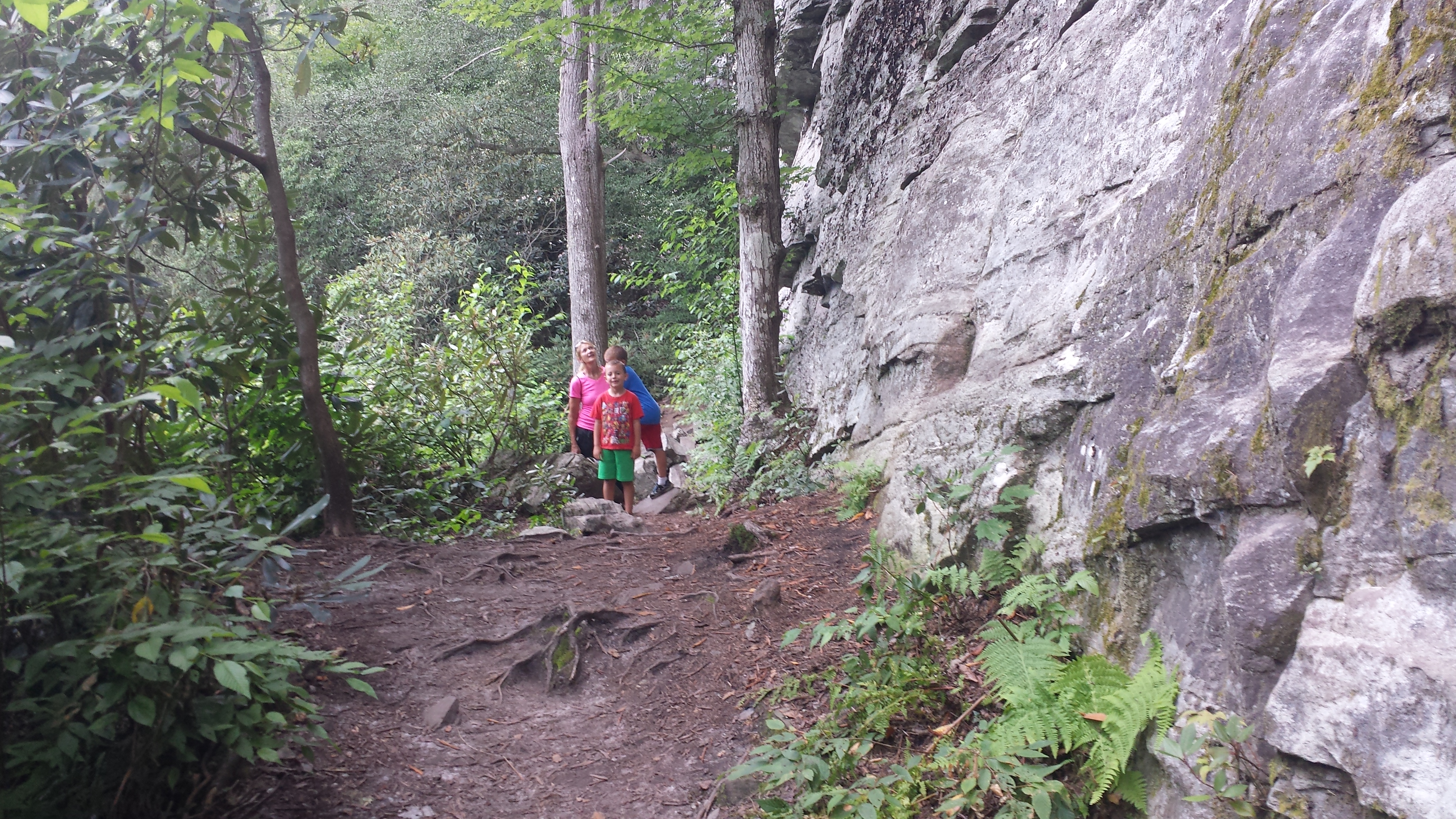 (this picture is where the trail was the easiest with this massive rock wall beside it)