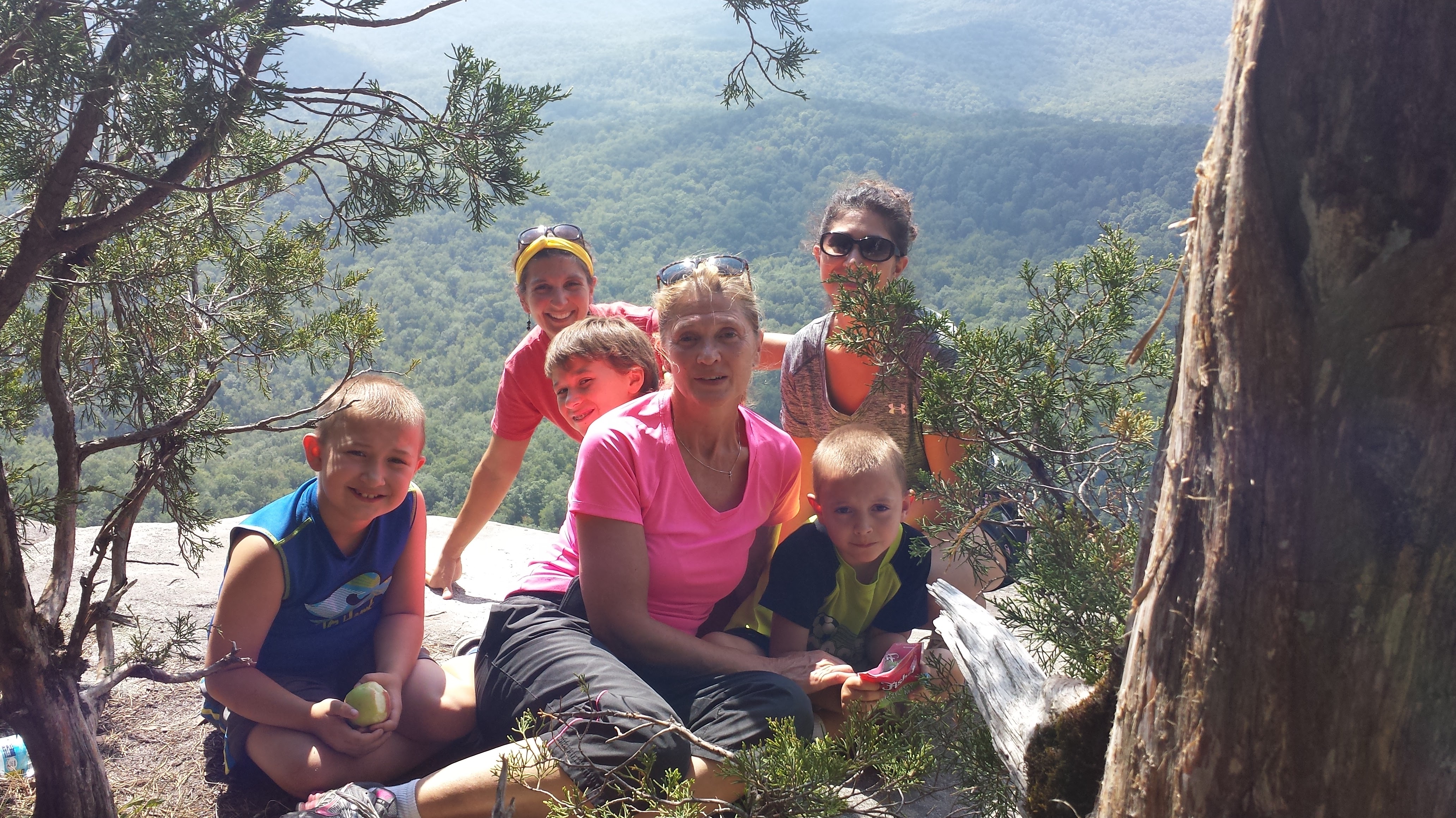 It’s actually a little scary at the top, mostly due to having the kids and the dog with us made us very nervous. I set my water bottle down beside my bag at one point to give my mom my phone to take a picture and my bottle rolled right off the mountain/rock…
