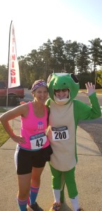 Back out to the start line at 7:55am. The lizard suit gave us entertainment. The Mayor of the City gave a pre-race speech as well.