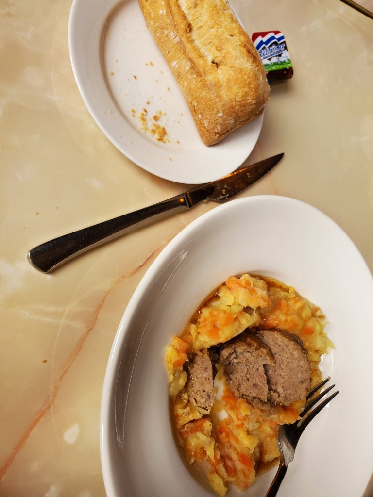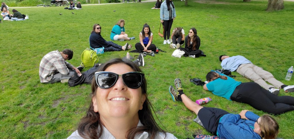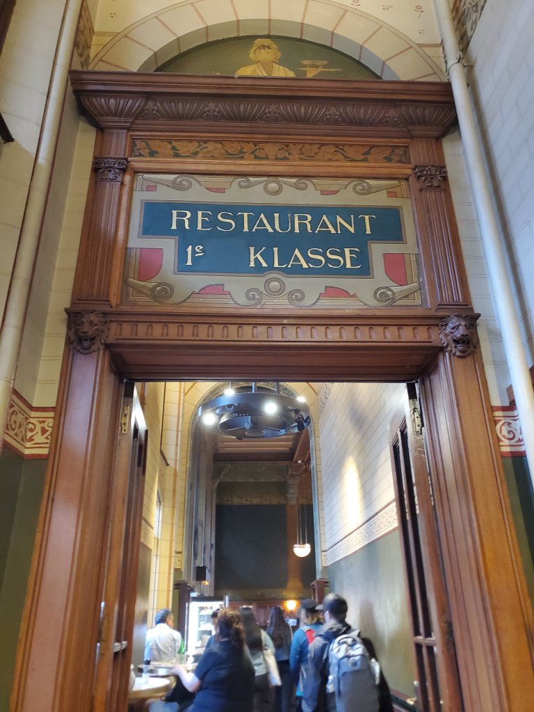 Being tired, we rested in VondelPark. Some fed the ducks while others napped in the grass. Dinner was at the Central Station at 1 Klas. It was a meatball Set upon a”mash” of carrots,potatoes,onion.It was rather good. This was the EF Tour meal… which we learned was 1 srandard neal for all tgat they pretty much prepared right before your arrival time. They were ready with them when we arrived at 6pm and your choices were vegetarian or meat. If there were any allergies we were supposed to make sure they were aware prior. We had to remind the wait staff of the few dietary restrictions. We had a small dessert