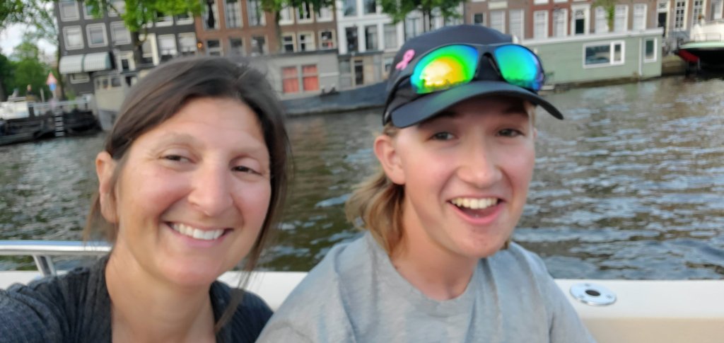 We made it back just in time and had a 30 + minute bus ride to our dinner location, surprisingly rather than a classic Dutch meal, it was Morrocan with a curry and tomato base of carrots and other vegetables and potatoes with a chicken thigh. Apple Pie for dessert. We were done with EF scheduled events after and asked the bus to return us to downtown Amsterdam. We had booked a Canal Cruise with Flagship and took an hour long educational and fun ride as a group. We were notified mid-ride that our bus driver could not stay out to bring us home and leave on time for Belgium, so we took a tram home to the hotel… However we learned later that our bus driver actually did not listen to our tour director and go home. Instead he sat and waited til 1045pm for us. Apparently he didn’t understand any of the ‘cancel’ messages she sent him in multiple languages.