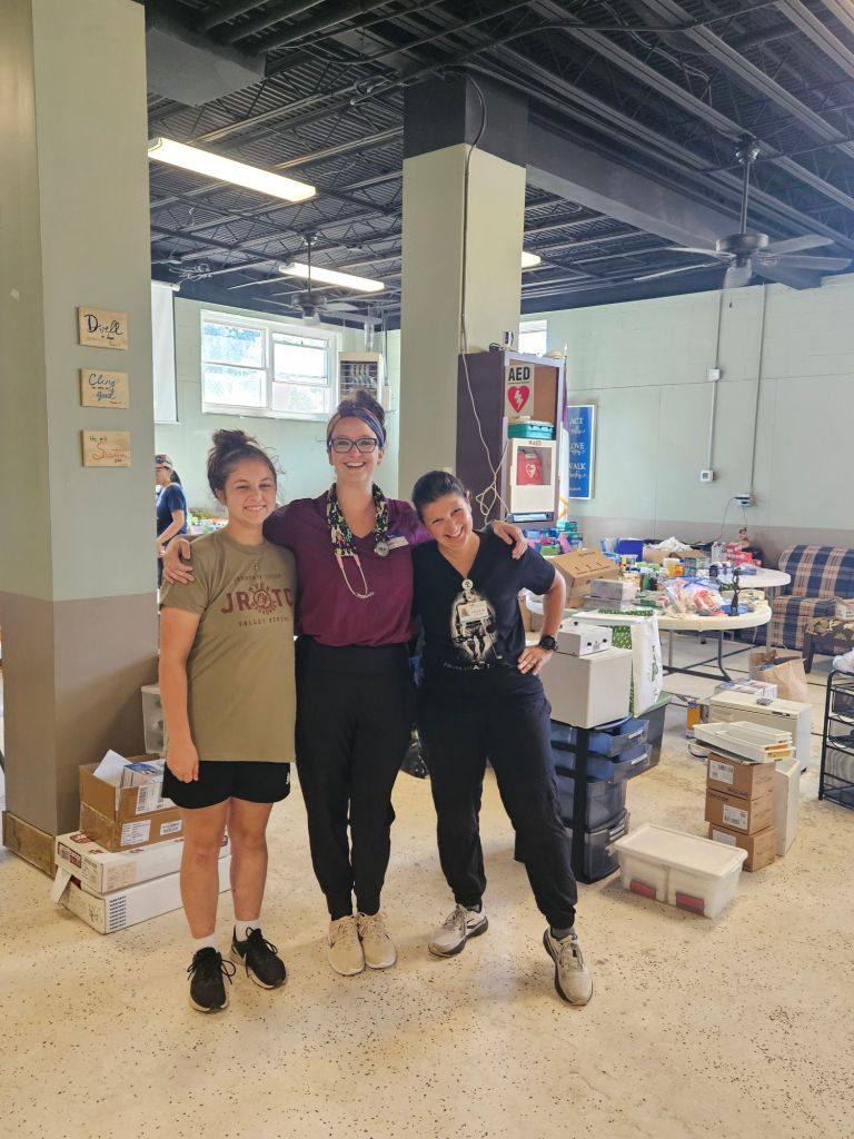 Distribution centers are a job in need. The ability to jump in and just grab, move, sort, and if you’re able to be on the distribution site, you’re checking in with people constantly to see what they need, listening to their stories, seeing tired or sometimes happily surprised faces as you attempt to load them down with everything they may possibly need for their home. Some people come and the tell you they lost everything. Some will tell you they are housing 4 families. They may be collecting things they never expected to be collecting… like feminine products. Some may come in with a medical need and you need to decide with them which medical OTC you have in stock to help them. Doesn’t sound very medical…however these distribution centers move so fast that it can seem very chaotic. Athletic trainers thrive in chaos. Another two of our athletic trainers, Becky and Barbara, helped in one of the most desperate areas’ distribution centers in Chimney rock area. They both did this with small kids and school and sports starting back sooner than later.