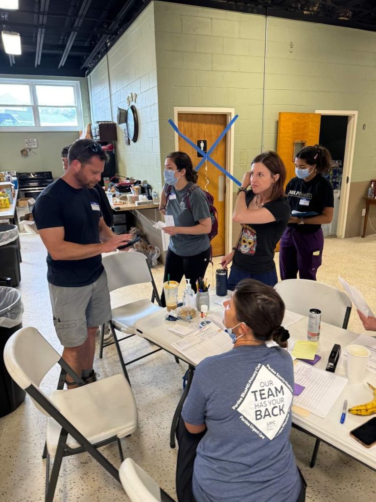 In Black Mountain, Kevin called Crystal after attending the first town meeting after the storm. He mentioned that we needed to get a clinic like the one in Hendersonville going as the local town government and chamber was figuring this out. Crystal contacted the chamber and connected with a local Nurse Practitioner with the idea to take this further and provide an actual free medical clinic to the community. They met with around 50 mental and physical health providers, and set out a grassroots operation to start a free medical clinic for anyone who walked in the doors. Shanda and Kevin branched off and took a group to do the same in Swannanoa. With medical donations, medical providers looking to serve, and ancillary support, both Black Mountain and Swannanoa were able to run 2 very efficient medical clinics in their communities for 3-4 weeks after the storm. Medical Doctors of various specialties, Dentists, Optometrists, Physician Assistants, Nurse Practitioners, Certified Athletic Trainers, Registered Nurses, Occupational and Physical Therapists, Medical Assistants, Students, and Mental health specialists of all types all joined in to help and work within their specialties. This included communications with various healthcare providers and assisting organizing what resources we could bridge the gaps for while those in the community had no access. This included to oxygen sources, diabetes care, battery powered nebulizers, and even assisting providing to those who lost homes DME supplies. We had providers to keep prescriptions filled while certain pharmacies and doctors offices couldn’t open. Our clinics were able to evaluate orthopedic injury, treat and/or suture wounds and lacerations, set patients up to get tetanus shots with the Health Department’s mobile clinics that popped up. We sent staff out to homes to check on medical needs as were determined needed.